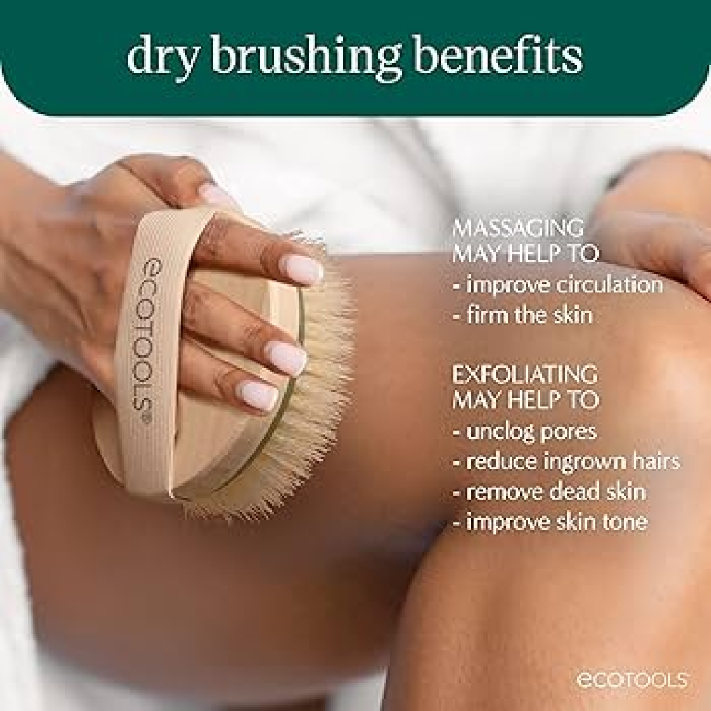 امنحي بشرتك انتعاشًا طبيعيًا مع EcoTools Dry Body Brush، الفرشاة المصممة لتقشير البشرة بلطف وتحفيز الدورة الدموية، لتمنحك بشرة أكثر نعومة وإشراقًا بشكل صحي وطبيعي.